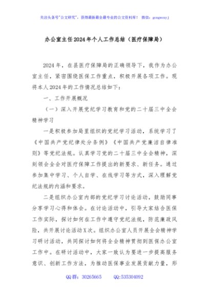 / 办公室主任2024年个人工作总结(医疗保障局)