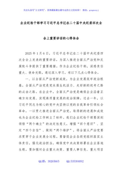 / 企业纪检干部学习习近平总书记在二十届中央纪委四次全会上重要讲话的心得体会