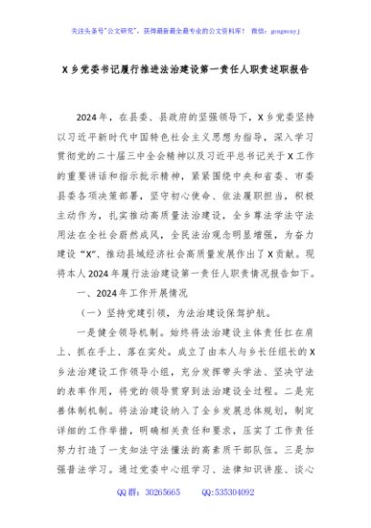 / X乡党委书记履行推进法治建设第一责任人职责述职报告