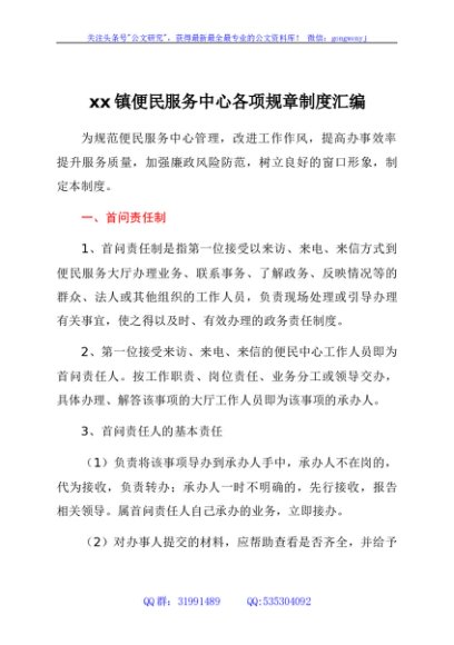 / xx镇便民服务中心各项规章制度汇编
