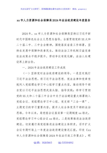 / xx市人力资源和社会保障局2024年法治政府建设年度报告