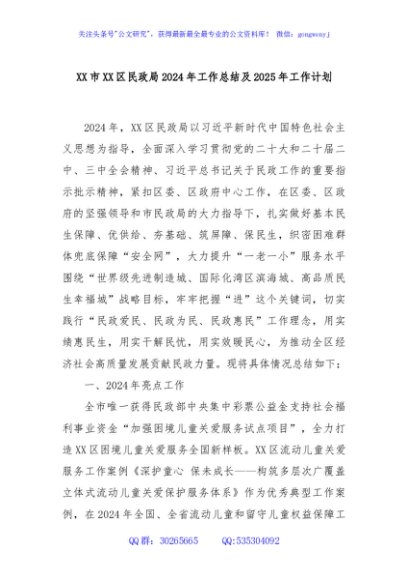 / XX市XX区民政局2024年工作总结及2025年工作计划