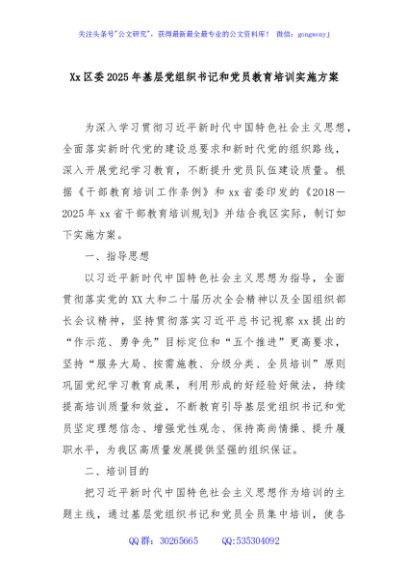 / Xx区委2025年基层党组织书记和党员教育培训实施方案