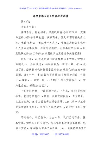 / 年底表彰大会上的领导讲话稿