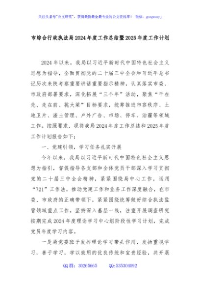 / 市综合行政执法局2024年度工作总结暨2025年度工作计划