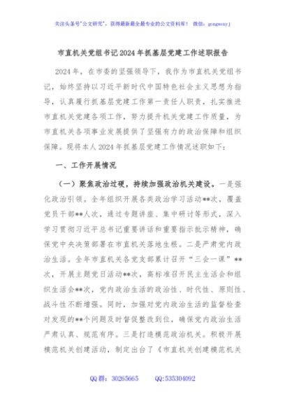 / 市直机关党组书记2024年抓基层党建工作述职报告