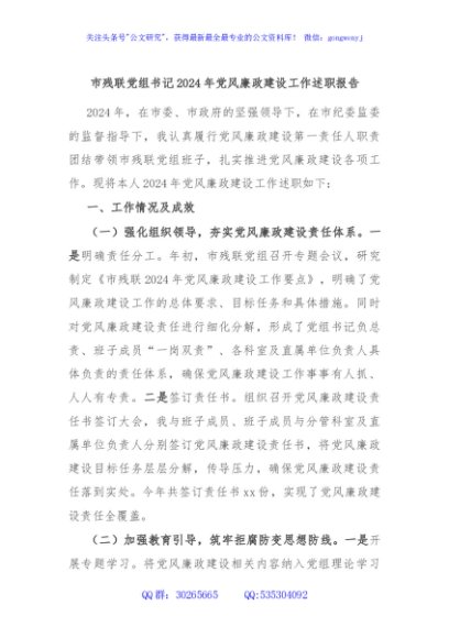 / 市残联党组书记2024年党风廉政建设工作述职报告
