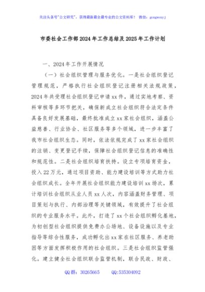 / 市委社会工作部2024年工作总结及2025年工作计划