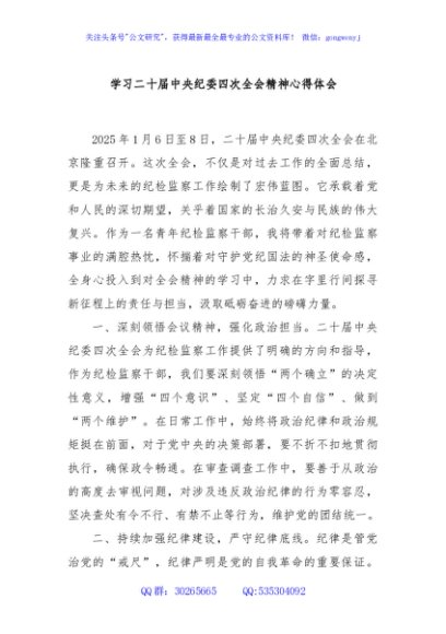 / 学习二十届中央纪委四次全会精神心得体会