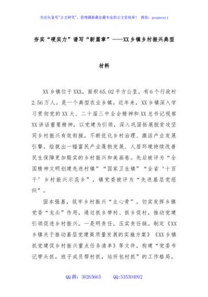 / 夯实“硬实力”谱写“新篇章”——XX乡镇乡村振兴典型材料
