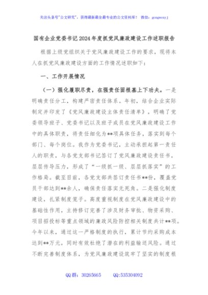 / 国有企业党委书记2024年度抓党风廉政建设工作述职报告