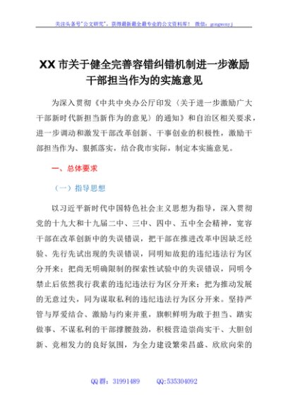 / xx市关于健全完善容错纠错机制进一步激励干部担当作为的实施意见