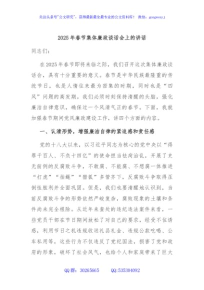 / 2025年春节集体廉政谈话会上的讲话