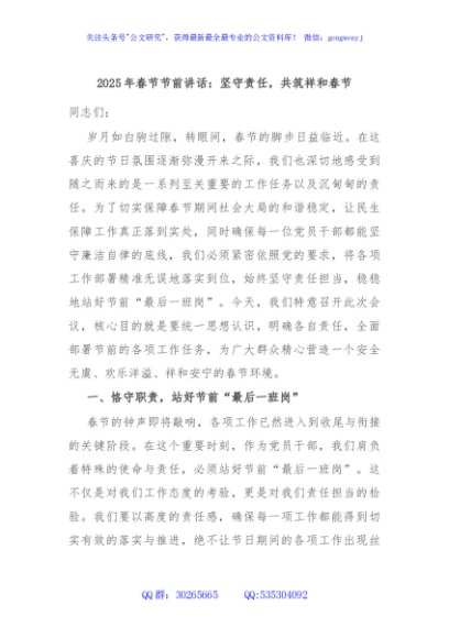 / 2025年春节节前讲话:坚守责任,共筑祥和春节
