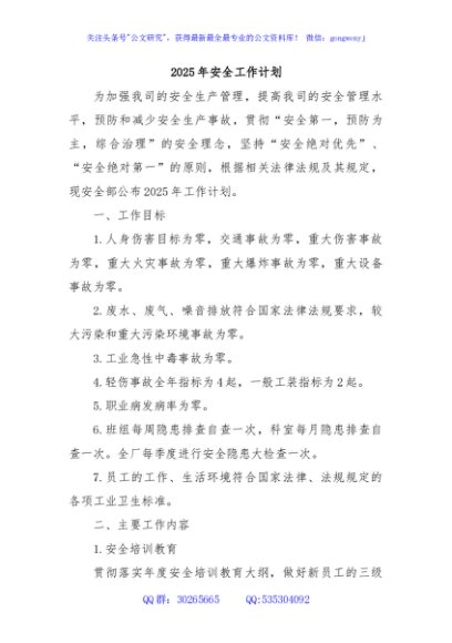 / 2025年安全工作计划