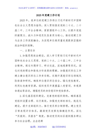 / 2025年党建工作计划