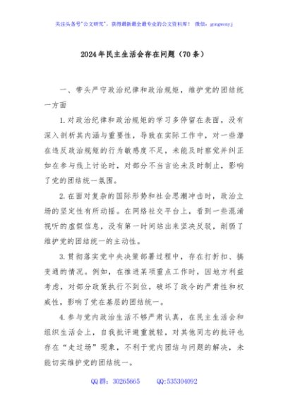 2024年民主生活会对照检查材料(书记“四个带头”)