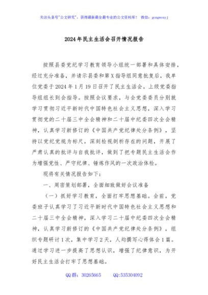 / 2024年民主生活会召开情况报告