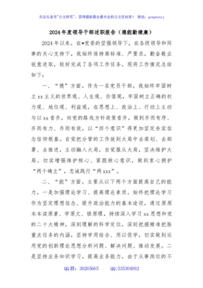 / 2024年度领导干部述职报告(德能勤绩廉)