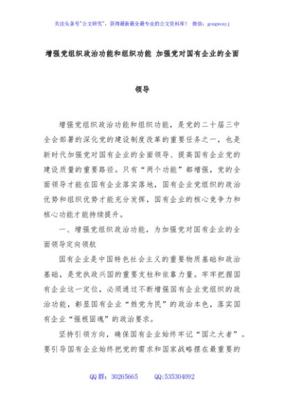 / 增强党组织政治功能和组织功能 加强党对国有企业的全面领导