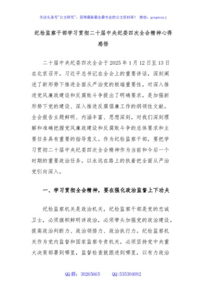 / 纪检监察干部学习贯彻二十届中央纪委四次全会精神心得感悟