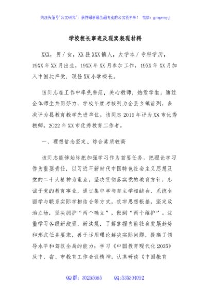 / 学校校长事迹及现实表现材料