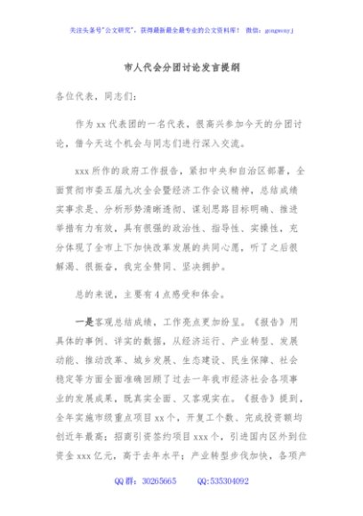 / 市人代会分团讨论发言提纲