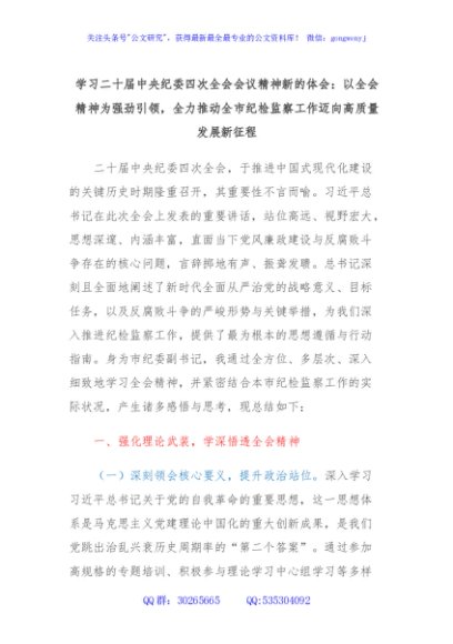 / 学习二十届中央纪委四次全会会议精神新的体会:以全会精神为强劲引领,全力推动全市纪检监察工作迈向高质量发展新征程