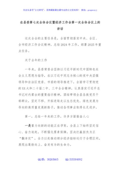 / 在县委第七次全体会议暨经济工作会第一次全体会议上的讲话