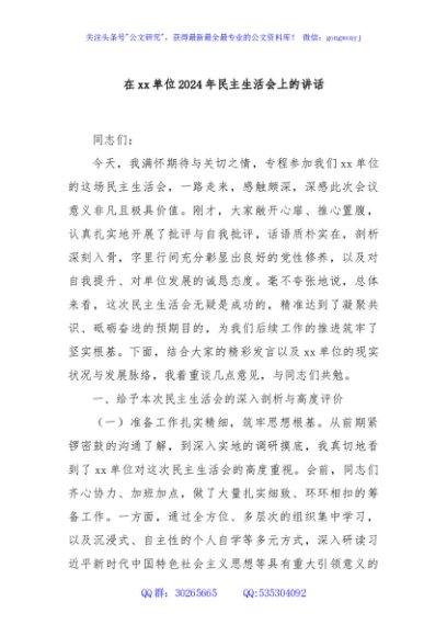 在xx县委办公室机关党支部2024年组织生活会上的发言提纲