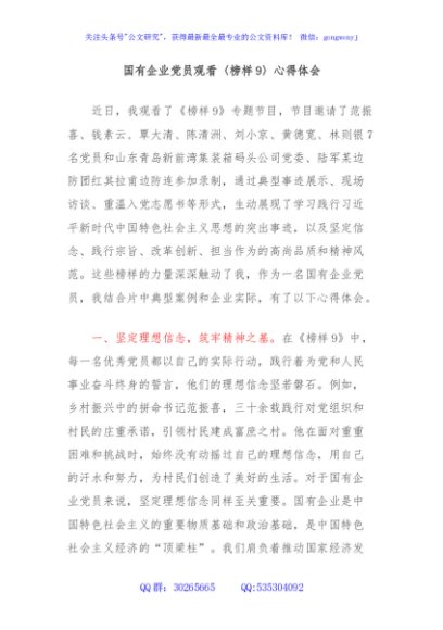 国有企业党员干部观看《榜样9》的心得体会
