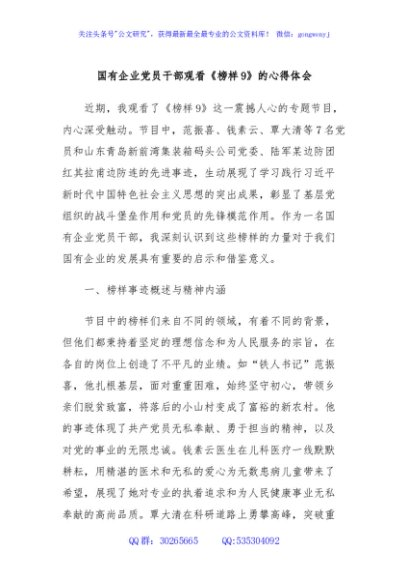 / 国有企业党员干部观看《榜样9》的心得体会