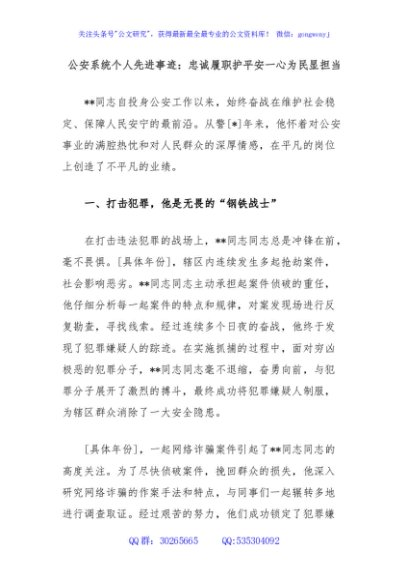 / 公安系统个人先进事迹:忠诚履职护平安一心为民显担当