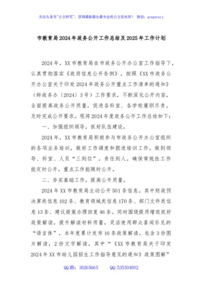 / 市教育局2024年政务公开工作总结及2025年工作计划