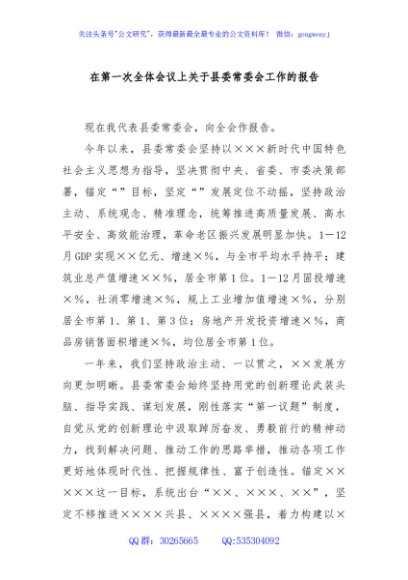 / 在第一次全体会议上关于县委常委会工作的报告