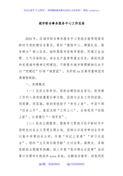城市综合事务服务中心工作总结