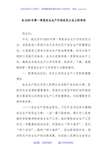 / 在2025年第一季度安全生产行动动员大会上的讲话