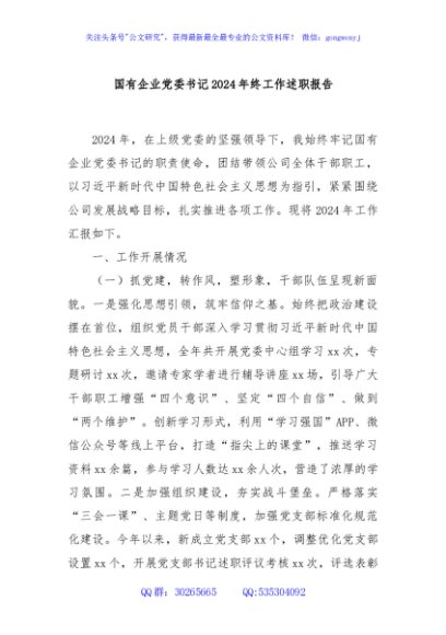 / 国有企业党委书记2024年终工作述职报告