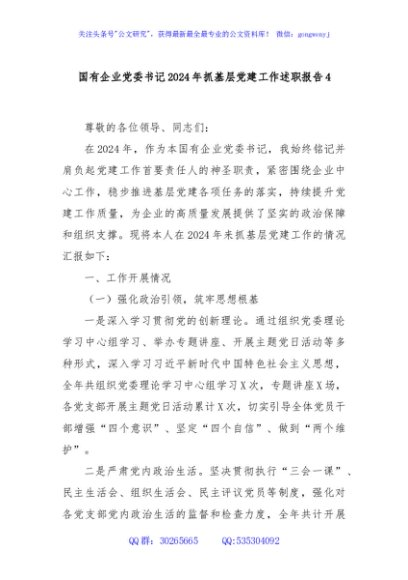 / 国有企业党委书记2024年抓基层党建工作述职报告4