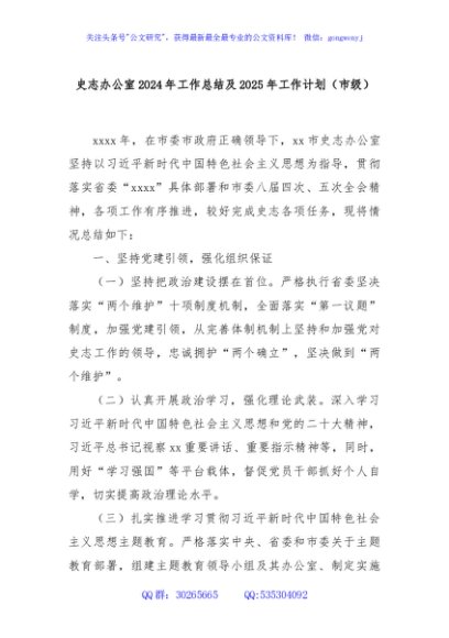 / 史志办公室2024年工作总结及2025年工作计划(市级)