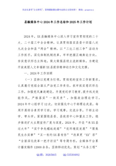 / 县融媒体中心2024年工作总结和2025年工作计划