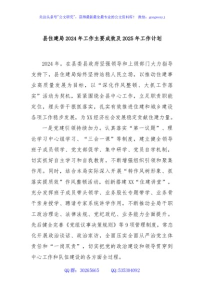 / 县住建局2024年工作主要成效及2025年工作计划