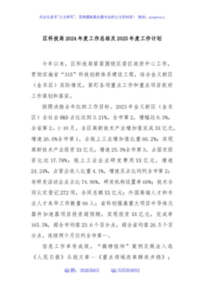 / 区科技局2024年度工作总结及2025年度工作计划