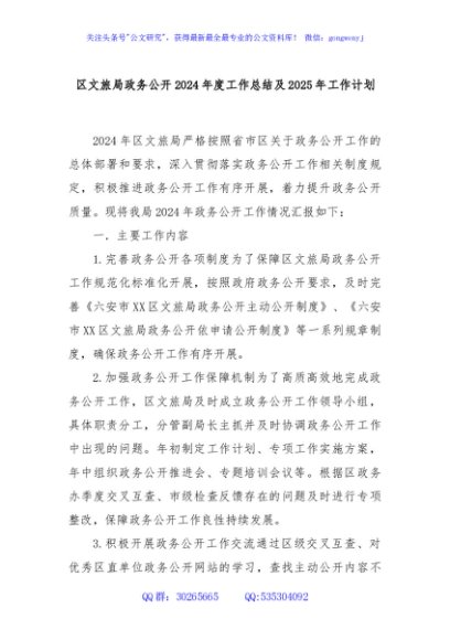 / 区文旅局政务公开2024年度工作总结及2025年工作计划