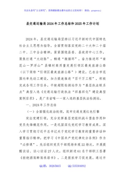 / 县交通运输局2024年工作总结和2025年工作计划