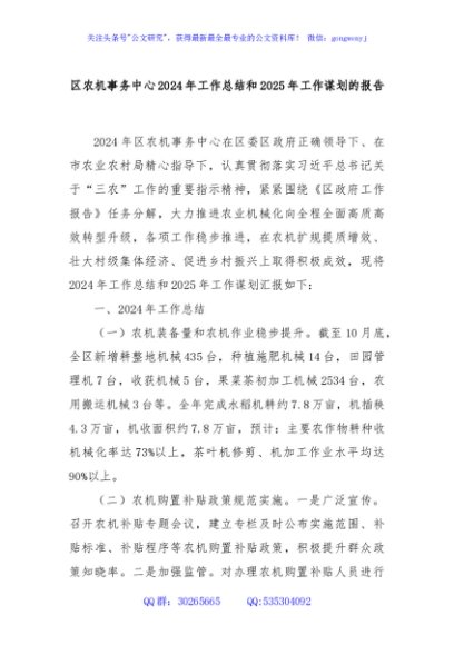 / 区农机事务中心2024年工作总结和2025年工作谋划的报告