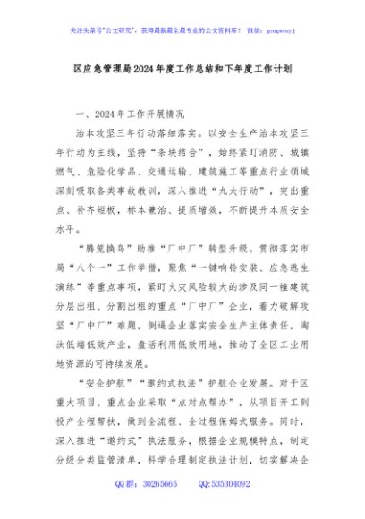 / 区应急管理局2024年度工作总结和下年度工作计划