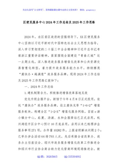 / 区便民服务中心2024年工作总结及2025年工作思路