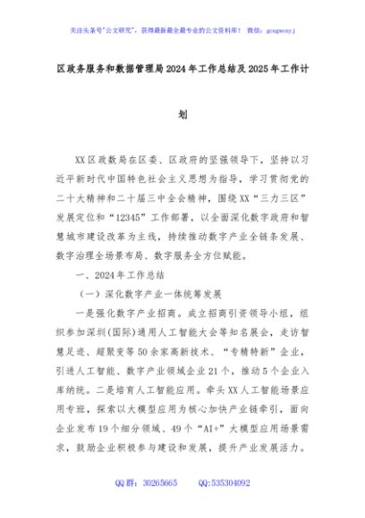 / 区政务服务和数据管理局2024年工作总结及2025年工作计划