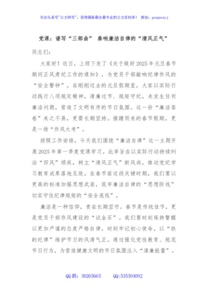 / 党课:谱写“三部曲” 奏响廉洁自律的“清风正气”